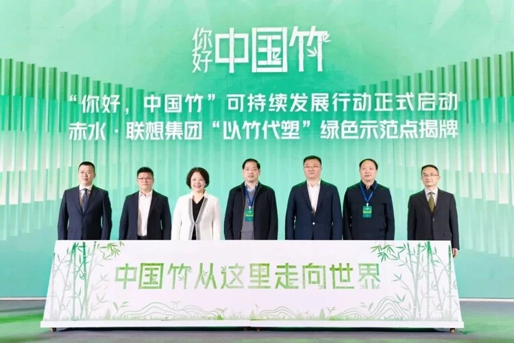 3月31日, 国际竹藤组织、人民日报新媒体、赤水市人民政府和联想集团发起的“你好,中国竹”可持续发展行动在“中国竹都”贵州省赤水市启动,以响应我国与国际竹藤组织共同发起的“以竹代塑”倡议。四方代表先后致辞,从不同视角阐释“以竹代塑”可持续发展行动的全球、产业、社会及文化价值,以及竹产业上下游企业、协会等代表共同见证联想集团与赤水共同打造的“以竹代塑”绿色示范点揭牌。