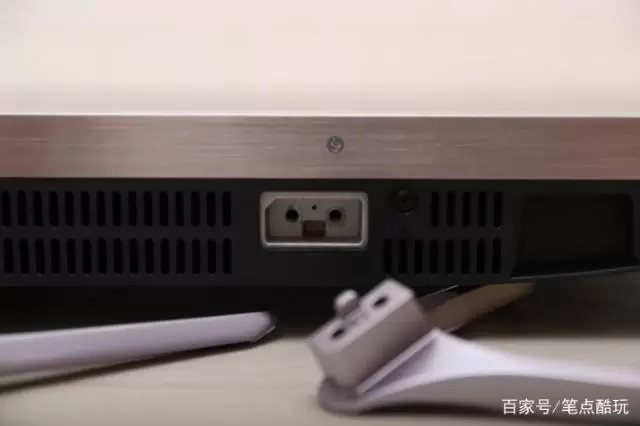 电源接口则在背面的另一边,设计很巧妙,避免了一边集中太多的线材使用,最后难以整理。150W的工作功率在家电中也算比较省电的一类了,毕竟一台家用电脑显示屏加主机加音响算下来也差不多接近了。