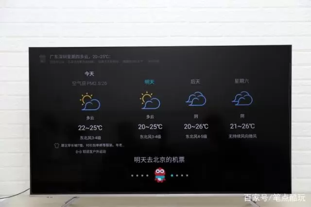 有时候看着电视,突然想了解天气情况同样很便捷,语音键按下,直接说问你想了解的城市天气情况。而且除了当天和明天之外,还能根据当天气象信息展示4天左右的天气预报。当然除了那么简单的了解天气情况外,语音功能还能兼顾很多方面。