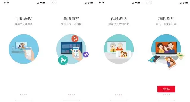 除开遥控器操作外,海信HZ55E8A电视同样具备智能电视的APP操作模式,欢迎页面也很清晰的列明手机遥控、高清直播、视频通话、照片投屏等内容,可以说视频通话算是比较难得的一个功能。