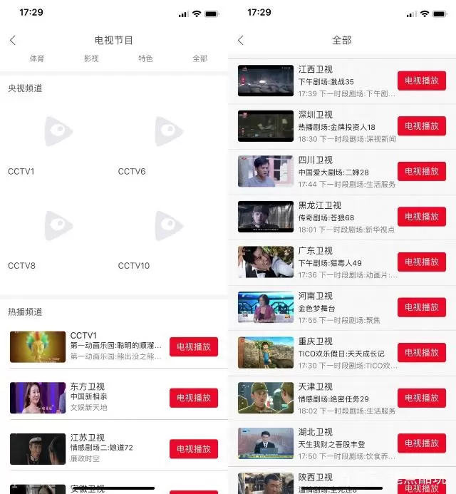 而在直播节目中并非手机类的直播,而是传统的各大电视台直播,这也是小编想说的,年代不一样,看电视的习惯也不一样,这点恰巧是老一代的人看电视的刚需,他们不喜欢一晚上整晚煲剧,一晚更新两集,看看新闻联播,看看爱国战争片就足够了,虽说这个功能是在APP上,但是操作各方面都很简单,小编教了家里老人使用,基本一教就会。