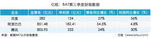 11月,BAT先后发布了最新季度的财报,财报显示,阿里和腾讯的单季营收都突破了800亿元,百度营收却仅为282亿。