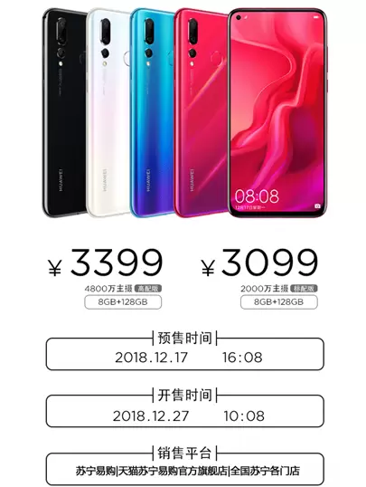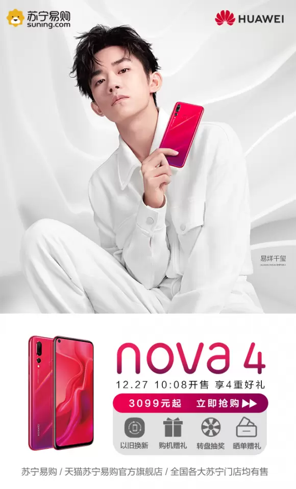 易烊千玺同款华为nova 4手机,上苏宁年货节开售3099元起抢购