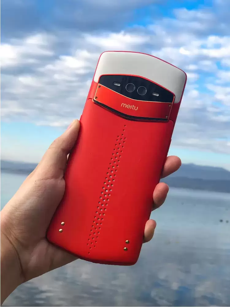 还未拍照,MOOM在拿到美图V7之后,就先夸赞了它的外观设计。据资料显示,美图V7的机身材料采用来自意大利的高定头层小牛皮,经由多种工序处理,在保留亮丽的光泽同时也不乏细腻的纹理,手感相当出众,镂空设计等很多小细节更是来源于超跑与高奢品,可谓诚意之作。MOOM使用的这台机器颜色是赤霞橙光,是不是还挺适合带着出门旅行、在蓝天白云下拍照的呢?