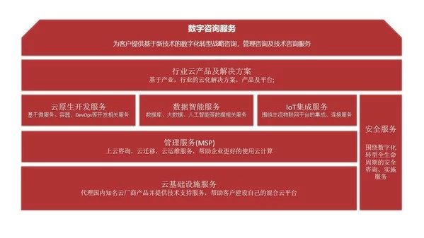 所谓云平台化,就是在IaaS基础上叠加了PaaS的需求,企业需要云MSP服务商提供中台开发、应用适配、数据聚合、平台及应用的迭代开发、运维保障等服务,因此,过去主要基于云基础设施IaaS提供服务的云MSP服务商,在经历了迅猛发展的阶段之后,后续出现了增长乏力。
