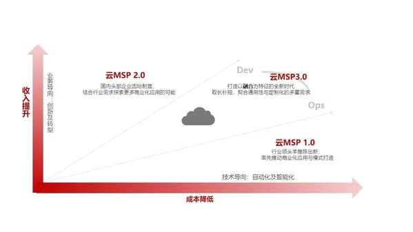 三是,云MSP3.0阶段,也可以称之为云原生MSP阶段,核心的发展方向是“Dev”+“Ops”相互融合,按照Gartner或者IDC给出的判断,那就是以往简单的云产品部署、运维已经不能成为云MSP服务商的竞争优势,而更具有增值价值的云全生命周期服务将成为云MSP未来的发展趋势。换句话说,未来强化咨询能力,提升混合云、云原生、大数据的技术实力将帮助云MSP服务商更好地应对未来的机遇与挑战。