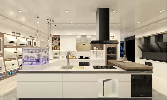 在友商还停留在概念机和模型机的时候,樱雪已经实现量产,5月份时就已经在全国100家终端体验店正式上线与消费者见面,打造完整的樱雪AI智能互联厨房体验中心。AI智能互联厨房展示在终端的核心区(C位),带给消费者全新的视觉冲击和使用体验,广受好评!