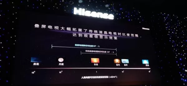 而相比传统液晶屏幕,由于海信通过“叠屏算法”实现了对色彩以及亮度的分层精确控制,因而在色彩范围、可视角度、以及超高对比度方面有着“碾压级”的优势。简单的说,海信与京东方研发的这套“叠屏技术”在拥有液晶屏幕与OLED屏幕优势的同时,有效避免了其“硬伤”对于画质损坏,从而实现了技术层面上对索尼的优势。