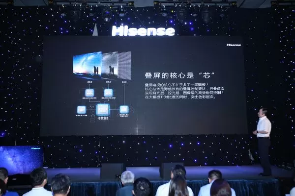 7月8日,在北京海信新品发布会上,新一代海信65吋液晶电视旗舰产品海信U9正式亮相。在相继推出超画质电视、三色激光电视、最窄BM区电视之后,在新品旗舰U9上,海信使用了其与国内面板厂商京东方合作的最新“叠屏技术”。