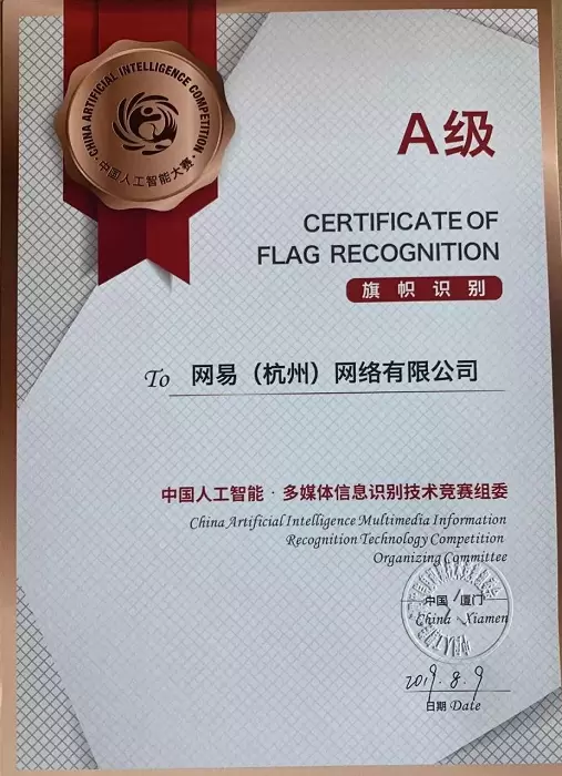 近日,首届中国人工智能峰会暨多媒体信息识别技术竞赛在厦门发布竞赛成果。网易易盾获得旗帜识别领域A级证书,这也是此次竞赛最高级别的奖项。