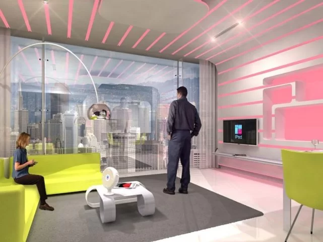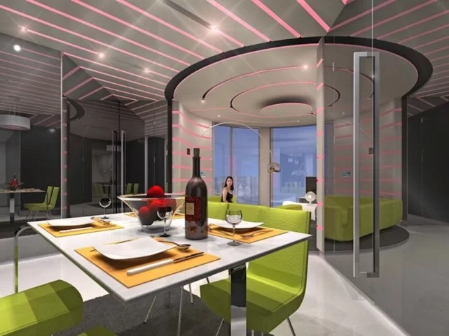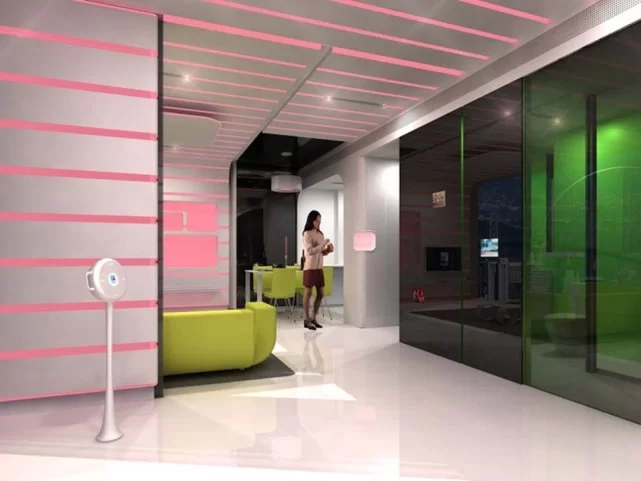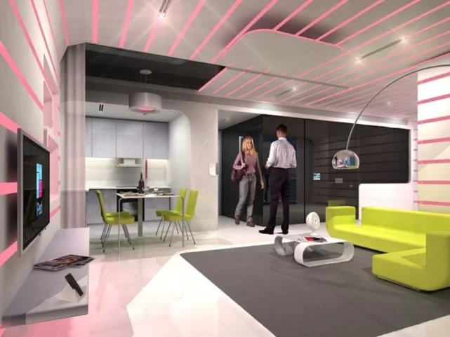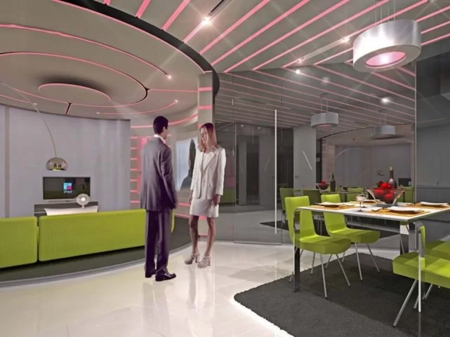 公寓中的灯光和音乐可以定制,还能映射出居民的情绪。比如如果有人按门铃、打电话或者有最喜欢的节目即将开始,那么灯光就会自动改变颜色。