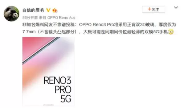 双模5G OPPO Reno3 Pro终于来了,这机身也太轻薄了吧
