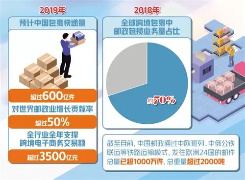 近日,2020年全国邮政管理工作会议在北京召开。从会上获悉,预计2019年全国快递业务量和业务收入分别完成630亿件和7450亿元,同比分别增长24%和23%,快递业务量连续6年稳居世界第一。