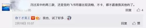 “还是觉得飞书用着比较流畅、不卡,都不愿意换其他的了。”这位网友对飞书的流畅性较为满意。