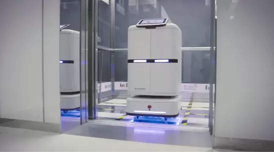 在本次新冠疫情防控战中,无人配送机器人轮番上阵,在危险的地方代替人工解决“最后一公里” 配送问题。疫情复工之后,Segway配送机器人S2为北京中关村东升科技园内的食堂和部分餐饮商户们提供无接触配送服务,将病毒“人传人”的风险降到最低。