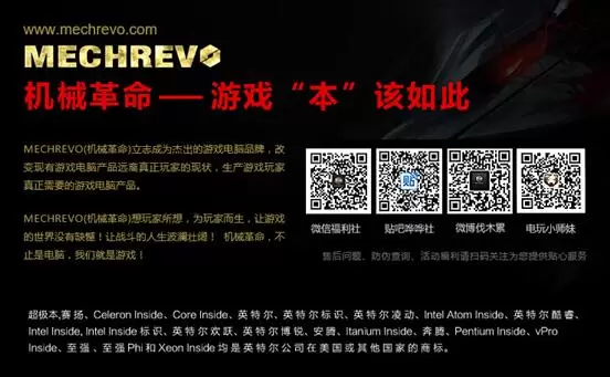 扫描二维码关注机械革命官方微信、微博、贴吧,了解更多游戏硬件前沿资讯。
