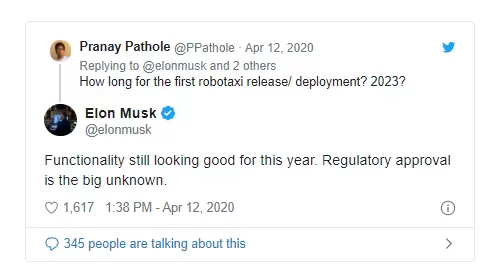 在去年的“自动驾驶投资者日”(Autonomy Investor Day)活动上,特斯拉阐述了其计划的大体思路,即以 "自动驾驶出租车"服务的形式运营自动驾驶特斯拉车队。当然在当时看来,这似乎只是一种幻想,因为按照SAE的标准定义,还没有一家汽车制造商接近完全的、5级自主化。尽管如此,实用性、技术、物流和良好的意识等问题都不是埃隆·马斯克所担心的,因为他在周日的Twitter上证实,这项服务将在2020年实现功能上准备就绪。