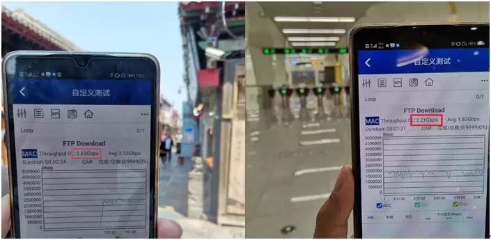 根据现网实际测试,在5G载波聚合模式下,使用5G终端进行测速,200MHz CA宏站定点测试下行平均速率达2.33Gbps,峰值速率达到2.63Gbps;室内单用户下行速率达2.21Gbps,创出室内速率新高。这意味着济南市正式迈进2Gbps时代,为5G用户带来“1+1>2”的极致体验,实现了“室内+室外”用户速率的绝对领先。