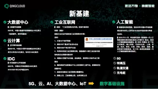 那么虚拟化究竟应该构建于什么基础设施之上?青云QingCloud给出的答案正是其所擅长的数字化,“新基建”力推的7大方向中有4项都集中于这个方向。