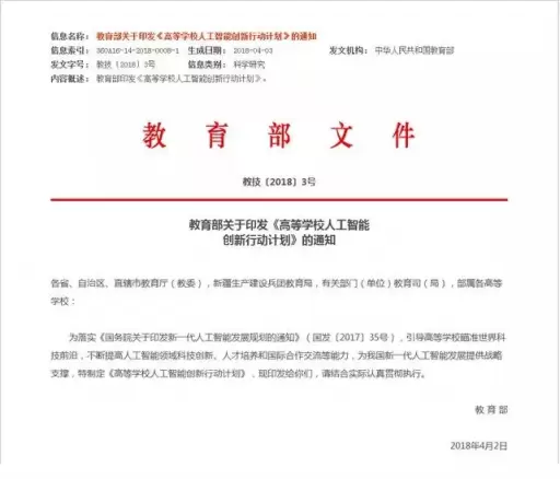近日,为引导高等学校瞄准世界科技前沿,不断提高人工智能领域科技创新、人才培养和国际合作交流等能力,为我国新一代人工智能发展提供战略支撑,教育部印发《高等学校人工智能创新行动计划》。