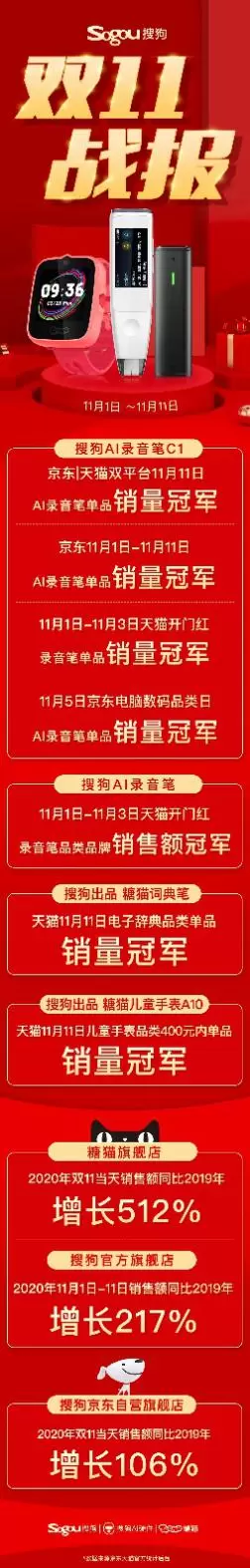 搜狗双十一战报:7项第一,AI录音笔成品类王牌