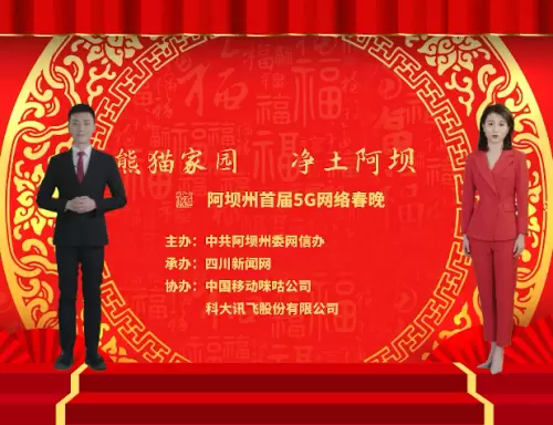 2月10日晚,由中共阿坝州委网信办主办,中国移动咪咕公司及科大讯飞股份有限公司协办的第一届阿坝州5G网络春晚成功举办。据悉,此次云端春晚以“熊猫家园 净土阿坝”为主题,旨在全面展示阿坝州2020年经济社会发展成就,回顾十三五以来取得的成绩,展望2021年的美好生活。晚会通过VR、AI、5G等新技术,为广大人民群众奉上了一场极具科技特色的文化盛宴。