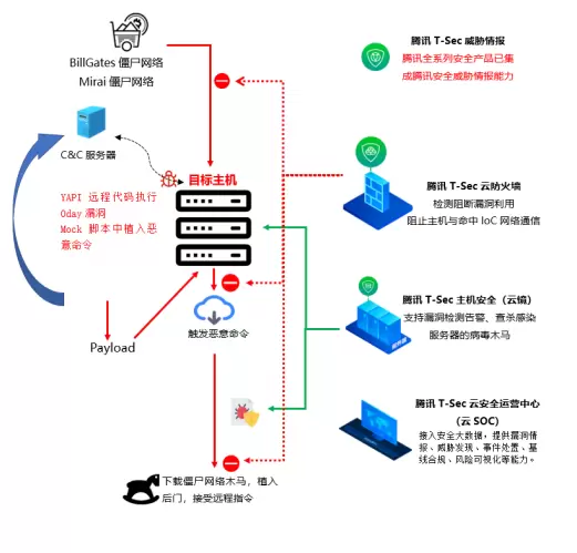 腾讯安全威胁情报中心检测到利用YAPI接口管理平台远程代码执行漏洞发起的攻击活动已影响数千台未部署任何安全防护产品的云主机,腾讯安全专家建议政企机构公有云系统部署腾讯云防火墙、腾讯主机安全(云镜)等产品检测防御相关威胁。