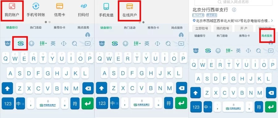 在此次合作推出的民生键盘银行中,百度输入法为民生银行设计开发品牌皮肤,创新研发民生银行服务及营销模块,为银行用户提供一站式便捷服务。比如,当用户启用民生银行皮肤后,可通过点击工具栏银行图标开启键盘银行,一键体验账户查询、银行卡办理、网点预约等轻量级银行服务,既高效满足用户诉求,又扩展民生银行的服务场景。同时,百度输入法助力银行扩展营销途径,向银行提供营销平台,让银行优质活动随时随地触达用户,拓展民生银行营销渠道。用户仅需简单几次点击,即可在输入法键盘上掌握银行热门活动,充分享受百度输入法提供的智能化体验。