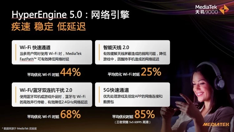 联发科天玑9000 HyperEngine 5.0内置网络引擎,带来多项先进的WiFi技术