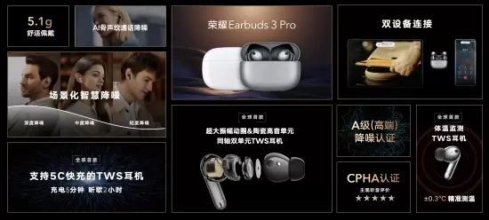 此外,极致的AI创新能力也在荣耀音频产品上得到了发挥。荣耀Earbuds 3 Pro在音质、降噪、体温监测、智慧连接等方面均充分应用了AI技术,如AI音效均衡补偿佩戴泄露提升音质体验,场景化智慧降噪轻松应对各种噪音环境,体温AI监测随时随地健康管理,还有5C快充等创新功能加持,共同带来这款“年度诚意之作”。荣耀Earbuds 3 Pro凭借全新技术探索和消费体验升级强势入局TWS头部阵营,进一步拓宽了智能穿戴产品在运动健康管理领域的应用边界,为音频行业带来新方向,也将进一步助力荣耀全场景智慧生态的高端化。