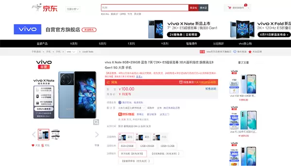 值得注意的是,3月31日起京东联合vivo推出先行者计划,参与先行者计划的用户可在3月31日10:00-4月11日20:30期间支付100元定金,并于4月11日21:00-4月13日21:00期间完成付款,即可享受京东提前发货,第一时间尝鲜vivo X Note新品。
