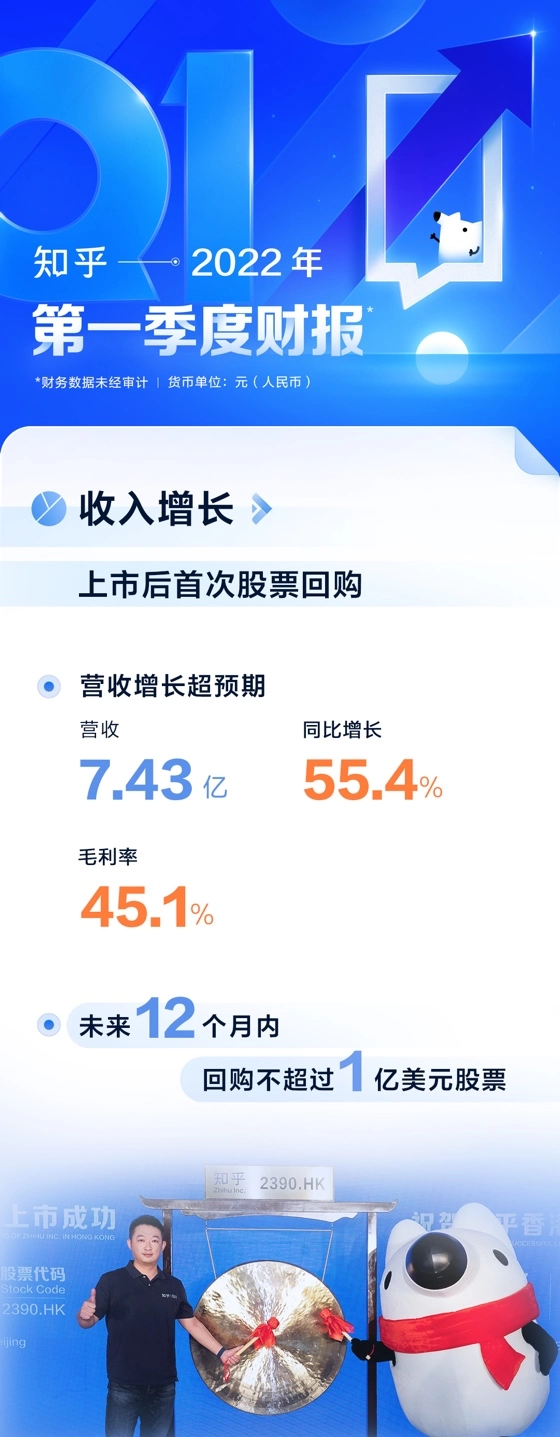 5月25日,中国最大的问答式在线社区知乎(NYSE:ZH,HK:02390)公布了2022年第一季度未经审计的财务报告,知乎收入保持持续交付,并且超出市场预期。基于对未来的信心,知乎还宣布在未来12个月内进行至多1亿美元的股票回购计划。