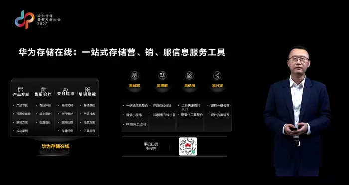 杨柏梁在分享中对“华为存储在线”做了详细介绍,集产品方案、售前设计、交付维护、培训赋能四大能力为一体,华为存储在线能够实现存储营、销、服资源一站式整合,使拓展及交付维护相关资源更容易获取,从而帮助合作伙伴成功签约,共同服务客户。