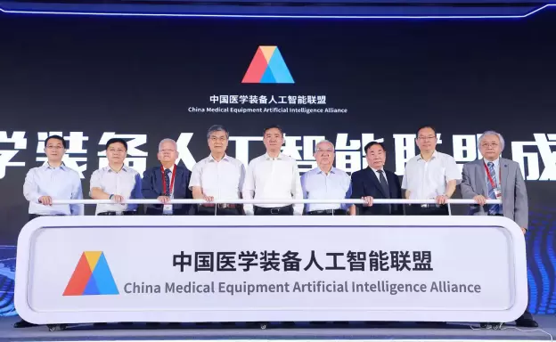 中国医学装备人工智能联盟在本次大会上正式宣告成立,工业和信息化部副部长辛国斌、原卫生部副部长朱庆生、中国工程院潘云鹤院士等领导参加了“中国医学装备人工智能成立大会”,并与中国医学装备协会理事长赵自林一起,共同为联盟进行启动仪式。