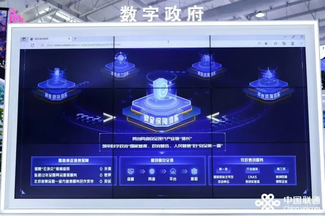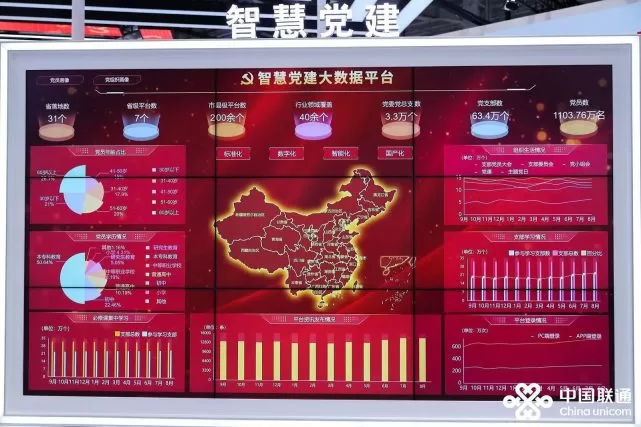 展区内还设有“党建及数字政府”专区大屏,以联通5G、大数据、云计算、人工智能等创新技术为依托,重点展示了联通在党建宣传、教育、管理及数字政务层面的服务能力。
