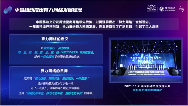 “算力作为信息社会的基础,已成为数字经济基础核心发展动力,既关乎核心生产要素升级,又关乎数字经济发展速度”。王晓云介绍,中国移动深刻认识到算力的重要性,提出了以网强算、大力发展算力网络的全新理念,希望通过算力网络,能够实现“网络无所不达,算力无所不在,智能无所不及”的愿景。