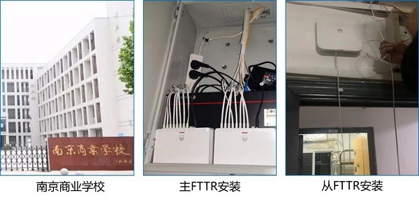 华为FTTR全光小微企业解决方案创新地采用集光猫、路由器、AC控制器和PoE交换机于一体的极简主FTTR设备,以及可灵活扩展的光电配线盒、光电复合缆进行全光免本地取电组网,通过支持Wi-Fi 6+技术的从FTTR实现室内Wi-Fi信号的100%覆盖,其综合成本相对于传统组网方式降低65%。南京联通高度认可该方案,迅速与校方成立联合项目组,在3天内高质量完成了南京商业学校男女生宿舍楼共计156间宿舍Wi-Fi网络的升级建设。