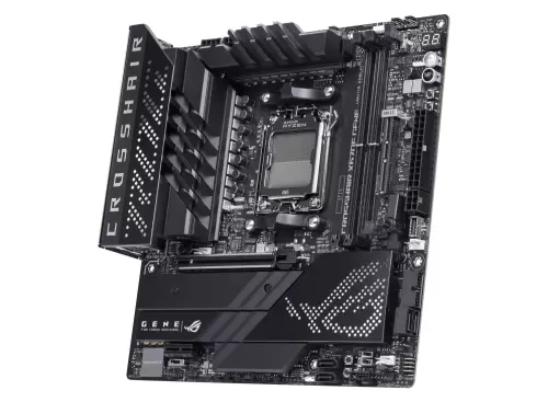 超频对主板有着极其严苛的要求,无论主板的电路设计、供电模组、做工用料,还是提供支持的超频技术手段等都对处理器的超频上限起到了决定性作用。ROG CROSSHAIR X670E GENE主板虽采用MATX板型设计,但拥有不输于一般ATX板型的强劲性能与扩展能力。主板配备16+2供电模组,单项最大支持110A电流,搭配双8Pin ProCool II高强度供电接口,可充分满足锐龙9 7950X处理器极限超频时的需求。强劲的电力支持可以提供更高、更稳定的超频空间,帮助硬核发烧友不断突破处理器性能极限。