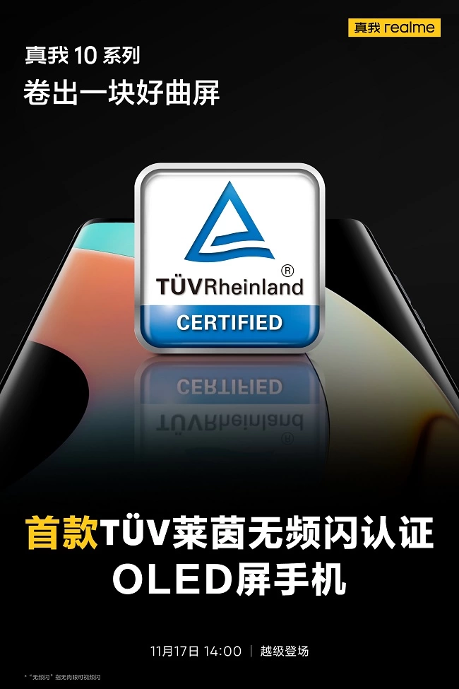 为了给全球用户带来更加越级的屏幕体验,真我联合国产屏厂斥资亿元定制了一块2160Hz超高频调光旗舰曲面屏。双方深度协作、联合研发,攻克了调光频率向上突破至2160Hz的技术难关。凭借全新一代护眼调光技术,真我10系列屏幕可以有效降低屏幕闪烁带来的视觉疲劳,提升使用时的眼部舒适度,更拿下首款莱茵无频闪认证,成为更值得选择的旗舰护眼曲面屏。