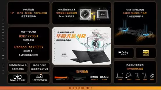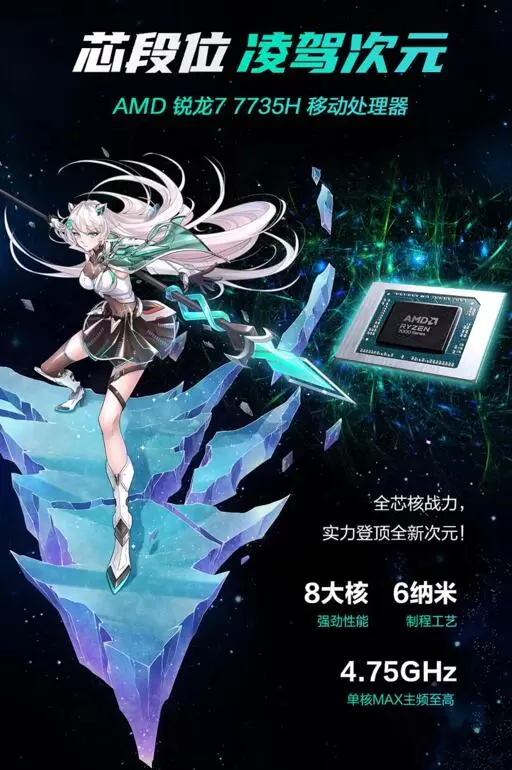 天选4锐龙版兼具性价比和高性能表现,其搭载AMD锐龙7 7735H平台,拥有8颗大核心与16线程,单核至高可达4.75GHz。显卡可选GeForce RTX™ 4060/4050笔记本电脑GPU,在第四代Tensor Core、第三代RT Core助力下,游戏大作无压力畅玩。