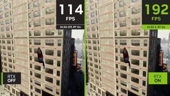 DLSS是AI驱动图形领域的革命性突破,可大幅提升性能。DLSS 3由GeForce RTX 40系列笔记本电脑GPU所搭载的全新第四代Tensor Core和光流加速器提供支持,可在不影响画质和响应速度的前提下,利用AI创造更多高质量帧,实现速度穿越!