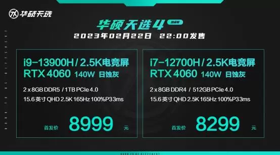 2月22日20:00,“超次元 新潮玩”2023华硕天选新品发布会,2023款全系天选游戏本正式发布,更有天选姬与游戏主播周淑怡的梦幻联动。2月22日22:00,包括天选4 Plus、天选4酷睿版、天选4锐龙版、以及天选4R在内的多款游戏本新品正式开售。