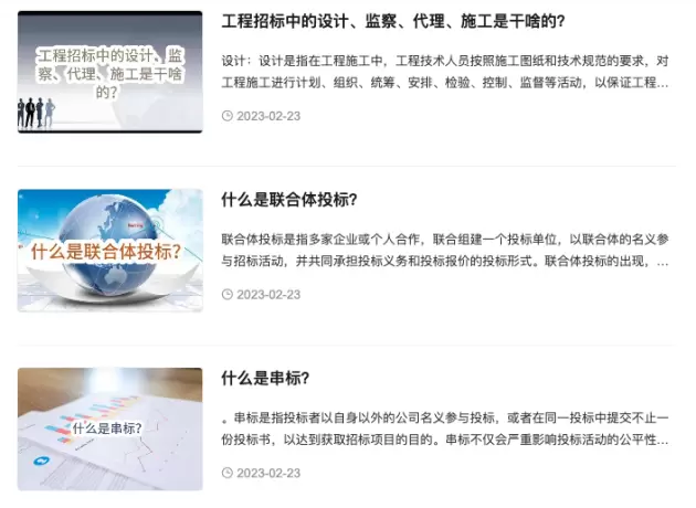 通过内容专区的形式,优选并解读招中标信息中的关键要素,将大大提升标讯信息的可读性。对于用户来说,可以更直观地了解到招中标公告的背景、目标客户详情和市场走向。同时,在标讯信息之外,行业知识的补充也将成为从业者的业务技能及工作效率提升的好帮手。