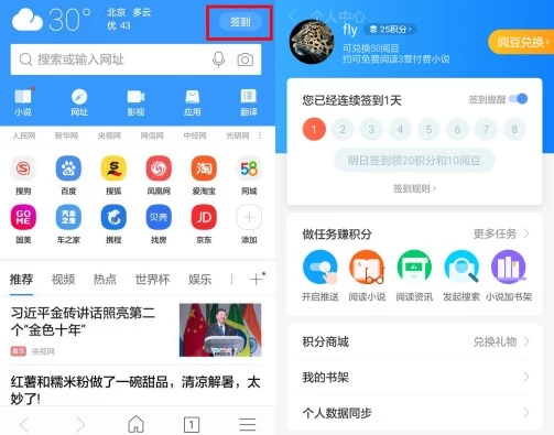 此外,搜狗手机浏览器新版还上线了全新的用户积分体系。用户点击首页右上角的签到按钮,即可进入用户积分体系,领取阅豆和积分。具体来说,用户登录之后,初始积分为1000分,同时,用户每天完成相对的任务,也可以获得一定的积分奖励。