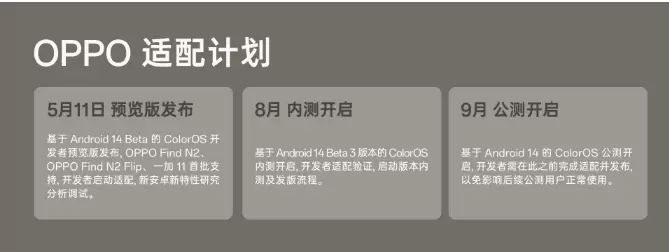 当前 OPPO 已对外公布了其完整的适配计划,开发者可以通过关注「OPPO开放平台」公众号,及时获取官方信息,确保在公测前完成适配工作。