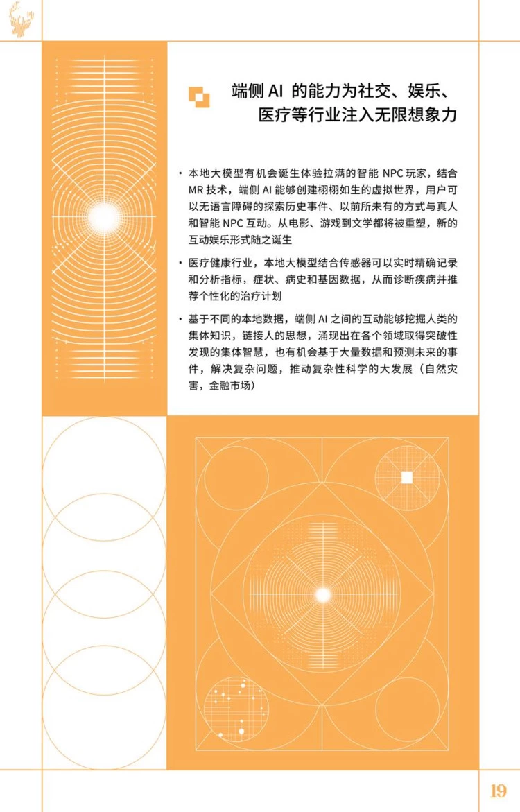 没有需求就没有市场,无论是 B 端还是 C 端,边缘 AI 都是追求效率和效果的共同诉求。然而,目前边缘计算的运算能力、存储和内存受到限制,模型压缩编译算法和模型芯片化将是未来的关注重点。未来,每个人都将像钢铁侠一样拥有一个个性化的超级智能管家 Jarvis。通过小型化的大语言模型与便携式的边缘 AI 交互窗口,人们能随时随地地与 AI 互动,感受到极高针对性的互动。智能技术将渗透方方面面,从手机到汽车、家居、机器人,甚至虚拟现实。在医疗领域,AI 结合传感器可以帮助诊断疾病并提供个性化治疗方案。同时,AI 还能在多领域挖掘集体智慧,解决复杂问题,推动科学进步。总之,未来 AI 将让我们的生活更智能便捷,创造无限可能。