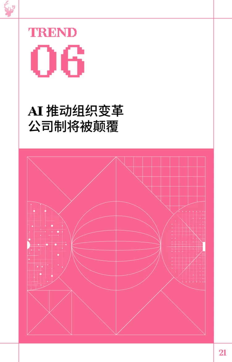 未来,工作方式将发生革命性变化。AI 正在重塑各行各业,特别是运营、设计、软件开发和科研创新等 AI 新增产值较为集中领域。人与机器协同合作,人充当领导者,AI 作为智能助手,可以极大释放人类创造力。我们将不再需要掌握机器细节,而只需善用工具。创业和创新将变得更加平易近人,甚至不再受资本束缚。依靠大模型的力量,仅凭超强的洞察力即可开发出优秀产品。重复机械的工作将由 AGI 承担,人类则专注于探索新的有价值领域,追求生活意义。工作日将不再受 996 影响,因为 AI 将全天候协助。新型组织形式下,机器将承担大部分任务,让知识工作者专注于进一步探究。未来创业者将侧重想象力、洞察力、决策力和持续学习,而非管理能力。顶尖岗位将是那些以第一性原理解决人类问题的研发者与科学家,他们将在 AI 助力下攻克贫穷、疾病、能源等社会难题。AI 新范式将重塑企业组织架构,取代繁重工作,简化管理模式,促进灵活协作。随着AI融入各领域,个人需要不断学习,而组织将更关注个体成长,迎接未来的变革。