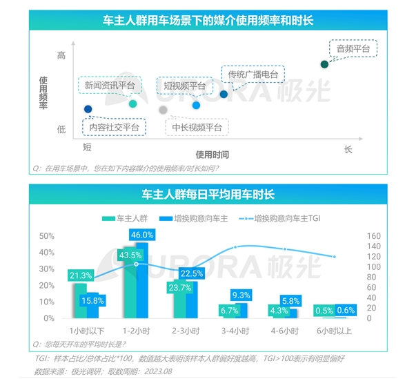 汽车成为车主人群第三空间,增换购意向车主用车粘性更高,音频平台在汽车空间内的高粘度特性凸显