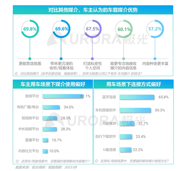 • 近七成车主用户认为车载媒介更能营造场景的氛围感和带来沉浸式的收听体验