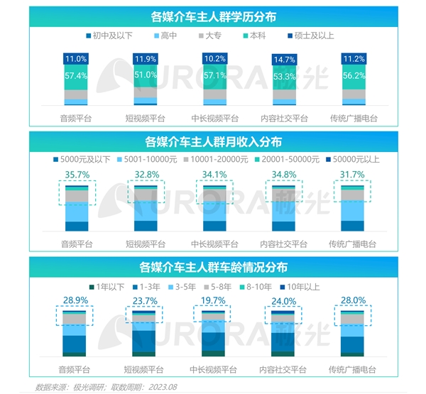 对比其他媒介,音频平台的车主用户学历与收入水平更高,车龄更长